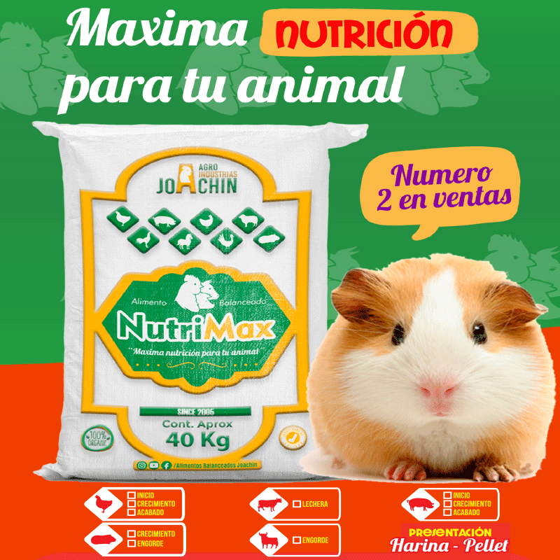 Agroindustrias Joachin el mejor aliado de nutrición animal. empresa importadora y exportadora que produce y comercializa alimentos balanceados en harina y Pellet (vitaovo) para: pollo, gallos, cuy, cerdo, ovino, caballo, peces, vacunos, etc. proporcionando opciones de alimentos equilibradas para optimizar el rendimiento y la salud de sus animales.